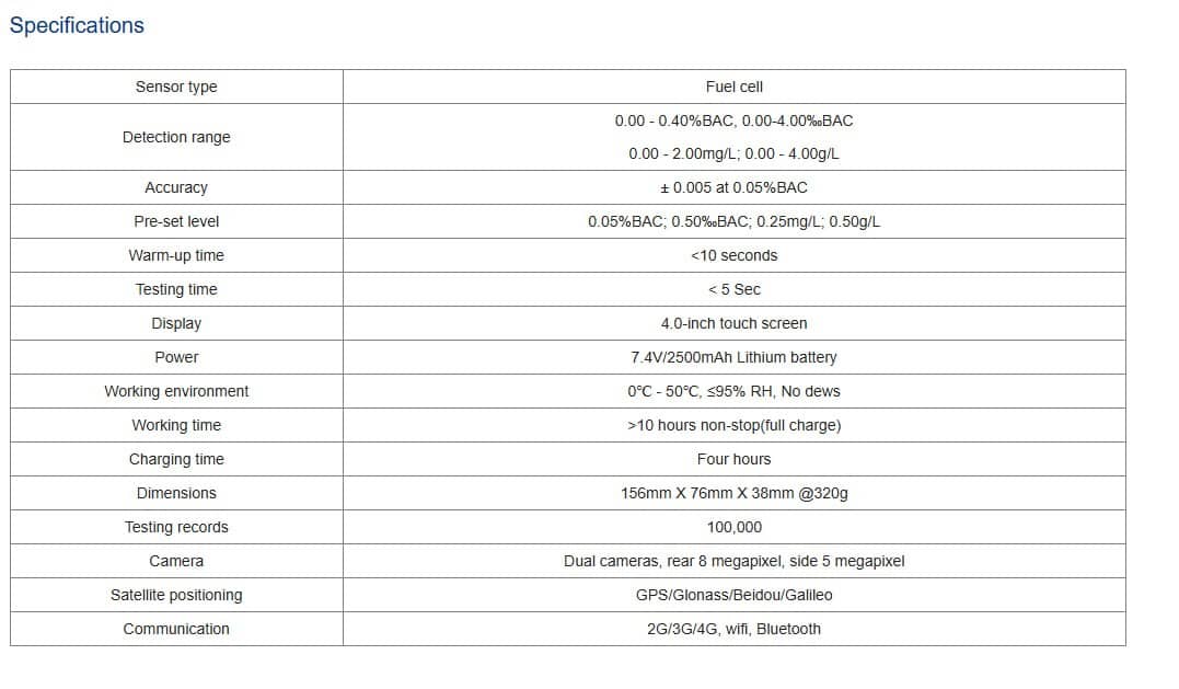 | بازه اندازهگیری: حدود 0.00 تا 0.40 %BAC یا 0.00 تا 2.000 mg/L. |