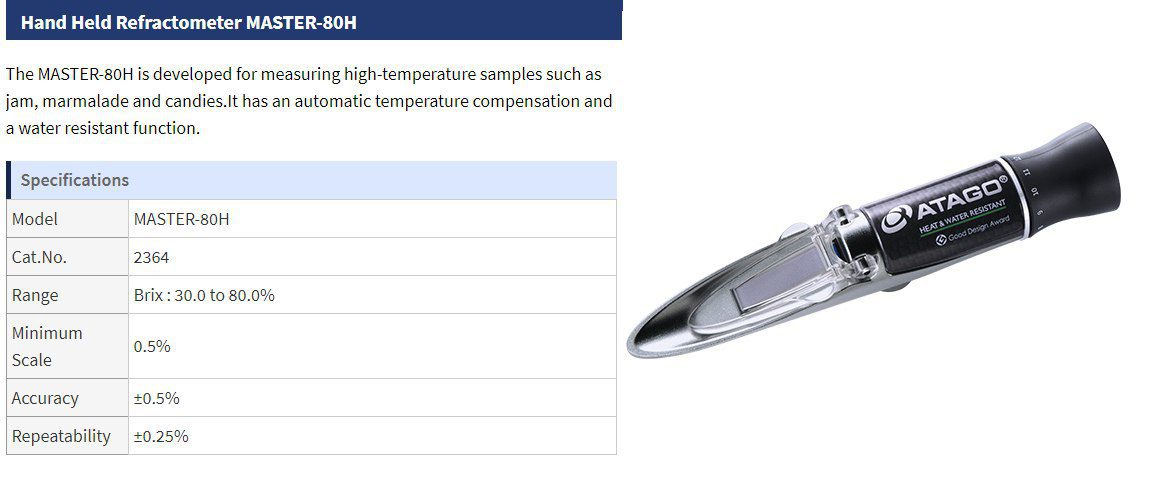 | بازه اندازهگیری بریکس: 30.0 تا 80.0% Brix |