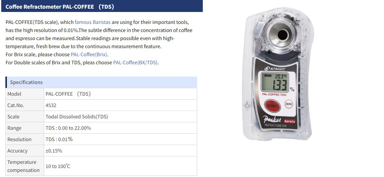 رفراکتومتر دیجیتال PAL-COFFEE (TDS) از برند ATAGO ژاپن، مناسب اندازهگیری دقیق عصاره قهوه با عملکرد سریع، ATC و طراحی پرتابل برای باریستاها و آزمایش قهوه.