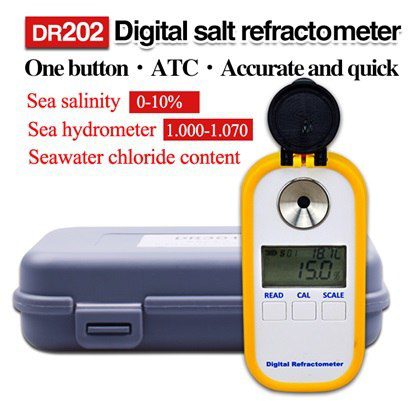 شوریسنج دیجیتال DR202 از نوع رفراکتومتر، با اندازهگیری 0 تا 100 ppt و نمایش سریع روی LCD؛ گزینهای کاربردی برای کنترل شوری آب دریا، آکواریوم و محلولهای شور در آبزیپروری و صنایع.