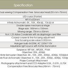 | آبجکتیوها: Infinity Achromatic شامل 4× / 10× / 40×(S) / 100×(S) Oil |