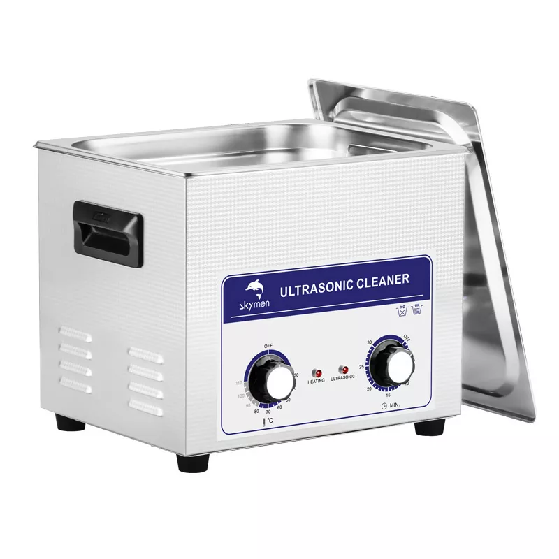 دستگاه التراسونیک ۱۰ لیتری Skymen JP-040 یک حمام التراسونیک بنچتاپ با بدنه استیل، تایمر و هیتر داخلی است که برای شستوشوی دقیق قطعات آزمایشگاهی، الکترونیکی، جواهرات و ابزارهای حساس طراحی شده است.